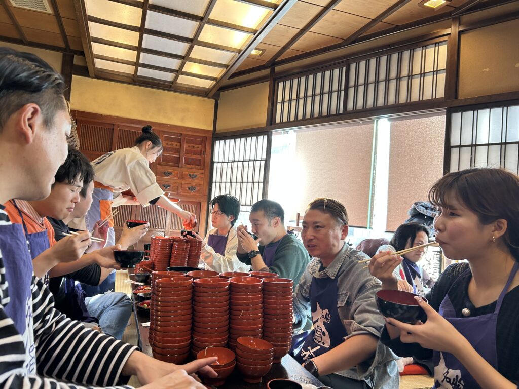 盛岡に到着。まずは名物わんこそばで100杯を目指すツワモノたち。