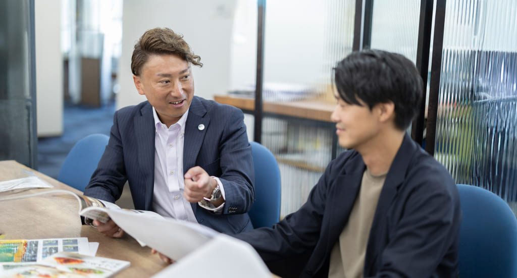 個客の魅力を最大限に引き出す営業マンがディレクターとして、プロのカメラマン・ライターの取材・撮影に同行。提案前に企画を立てて案内することもあるが、他案件の営業状況や契約状況を見ながら、旬で反響が出そうな企画を立案していくこともある。よりエッジの効いた企画を組み、反響へとつなげていく。