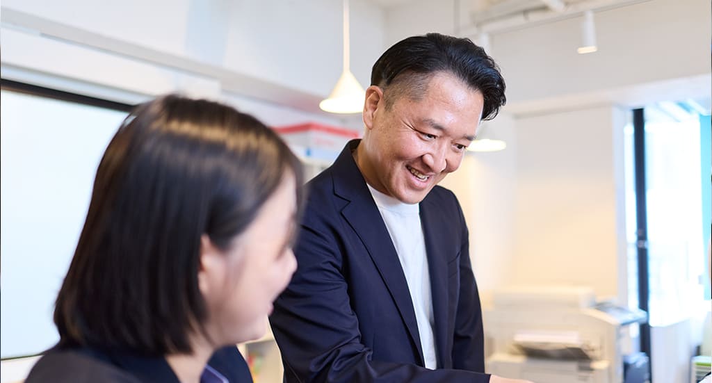 新規開拓力に加えて、顧客深耕力も磨いていく。「新人は皆で育てるもの」というテーマに沿い、後輩支援などで"自主性"を発揮。 -